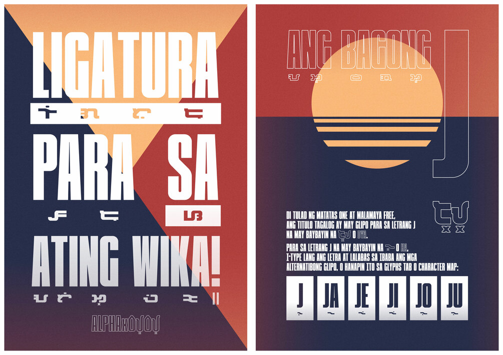 Titulo Tagalog is a modern compressed display alphabet Typeface fused with Baybayin under every syllables and powered with Ligatures for translation accuracy between Alphabet and Baybayin script for Filipino words. Ideal for titlings on your art and design projects.